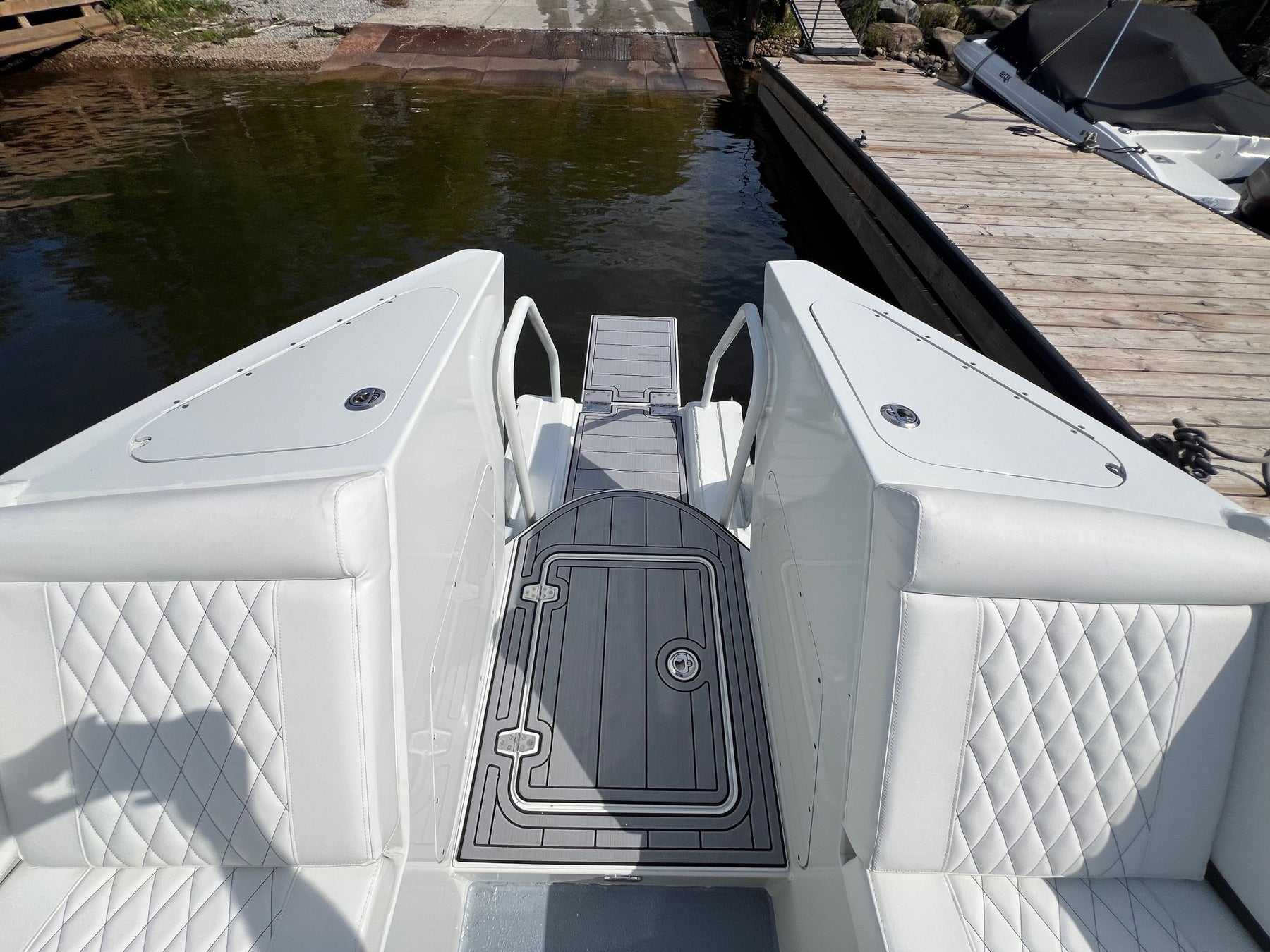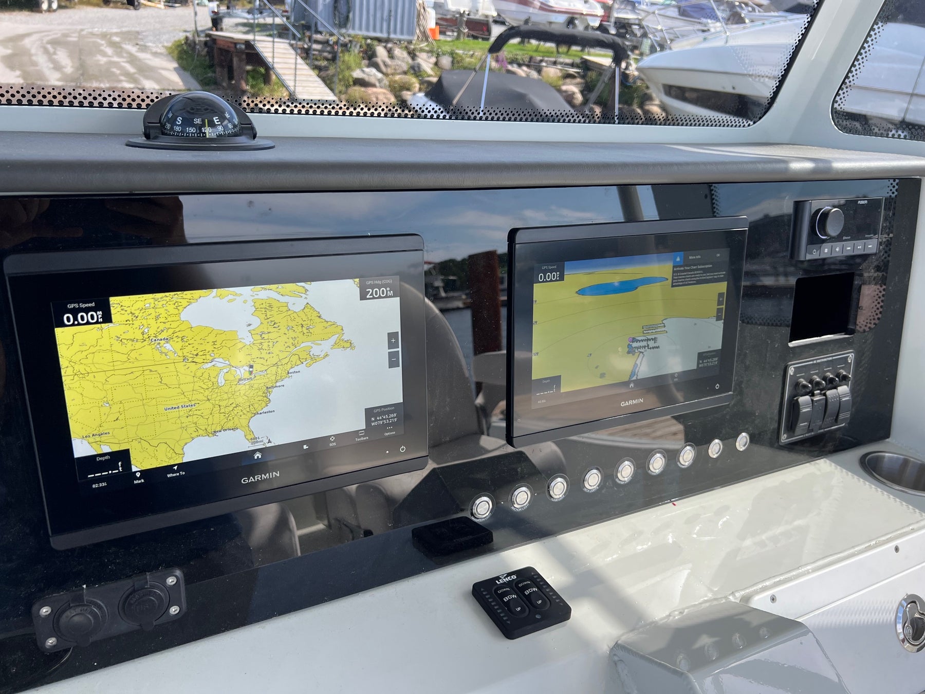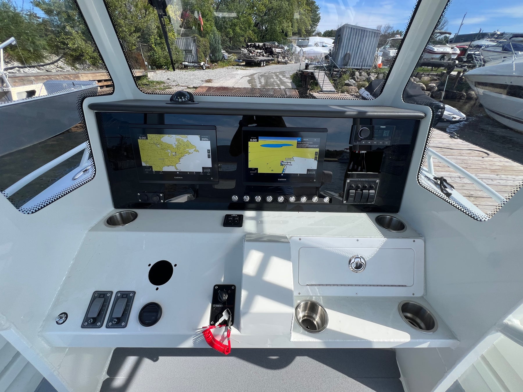 This Lighthouse is well optioned out with dual Garmin 12 inch displays, Lenco trim tabs, fusion sound system, full interior lighting package, power front bow gate.
