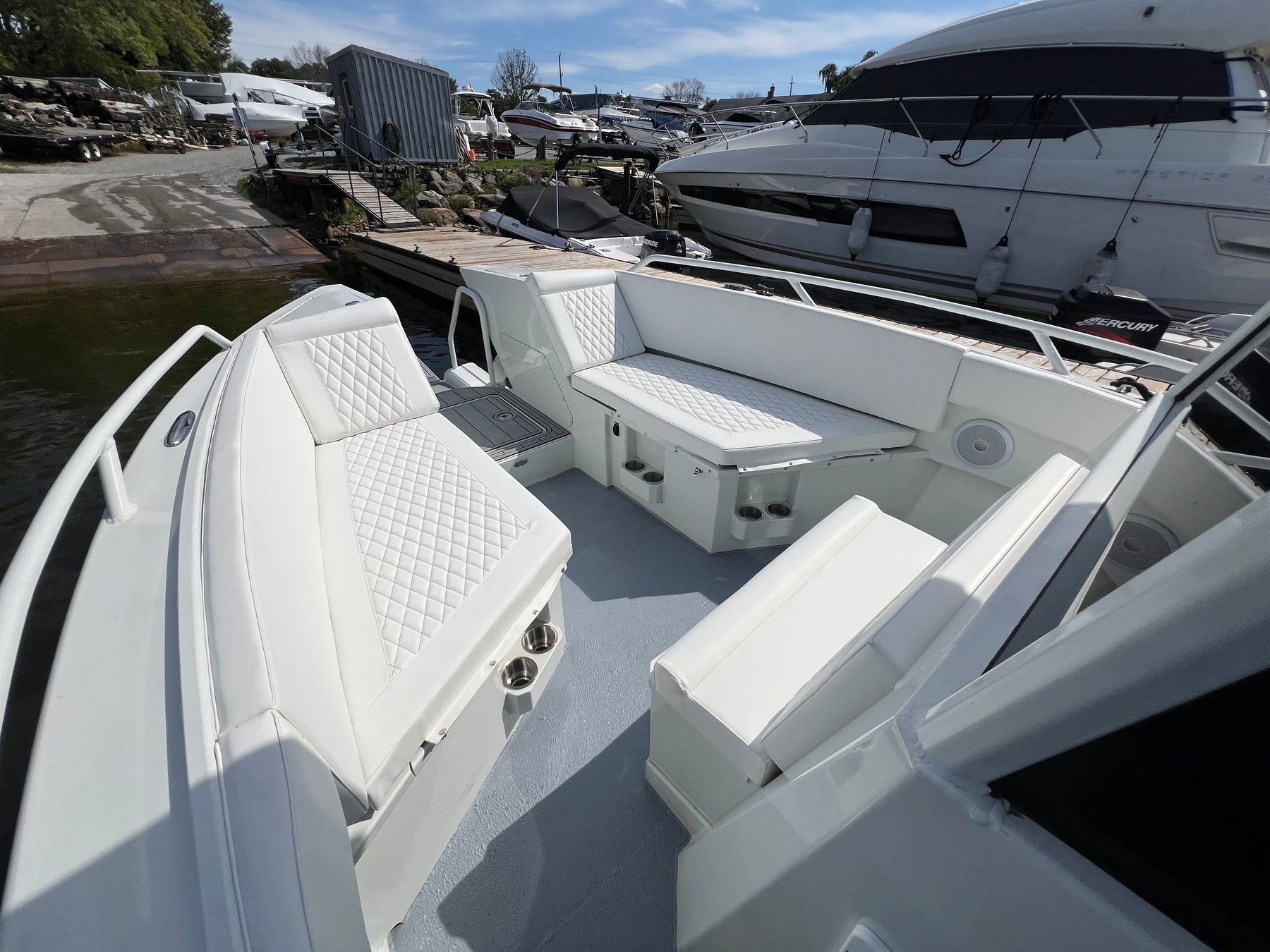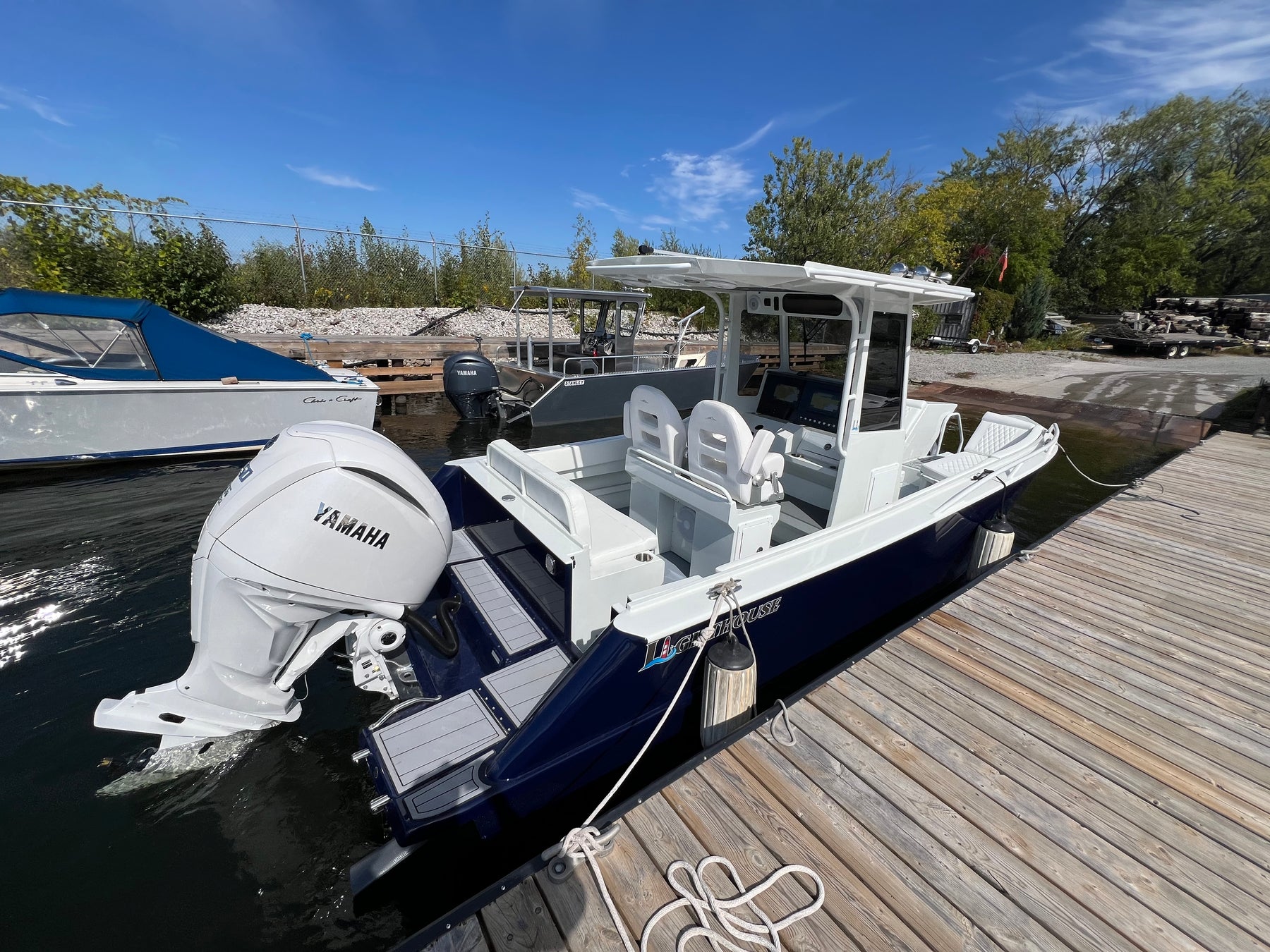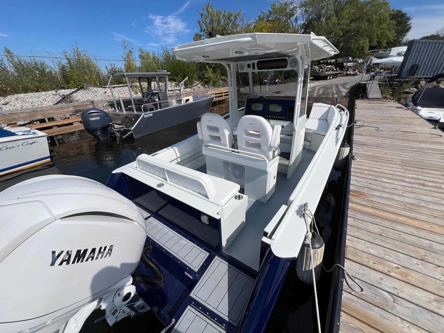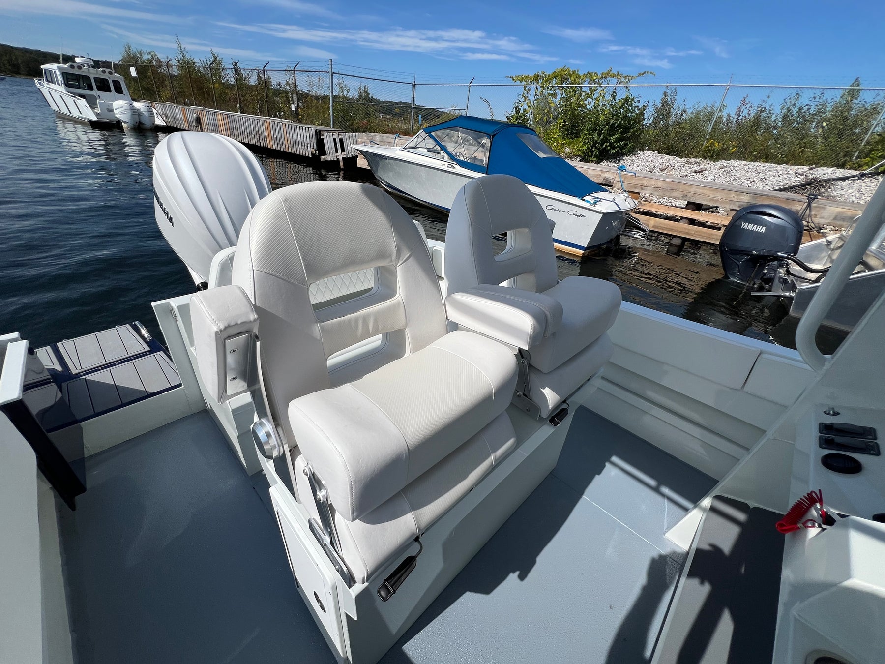 This Lighthouse is well optioned out with dual Garmin 12 inch displays, Lenco trim tabs, fusion sound system, full interior lighting package, power front bow gate.